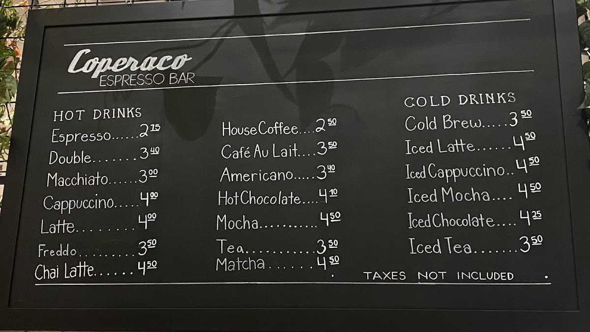 The menu at Coperaco Café offers a relaxed selection of thoughtfully prepared drinks and casual bites, perfect for starting your day or taking a thoughtful pause. Here, simple yet comforting coffee options like cappuccinos and espresso sit alongside quieter indulgences such as fresh pastries and avocado toast, creating a balanced offering that caters well to both quick breaks and longer, unrushed visits.